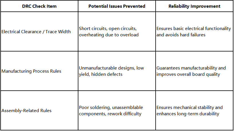 DRC is more than just a final checklist, it is a core tool that fundamentally enhances PCB Layout reliability. By applying automated and precise rule verification, DRC eliminates potential design flaws at the layout stage, preventing them from turning into costly errors in the finished PCB.