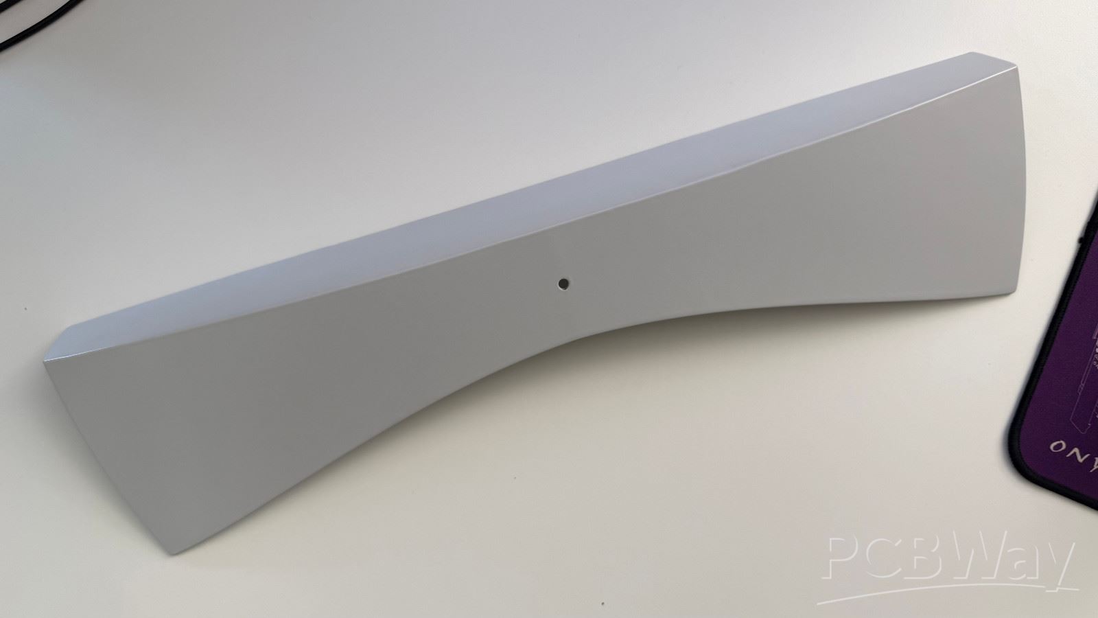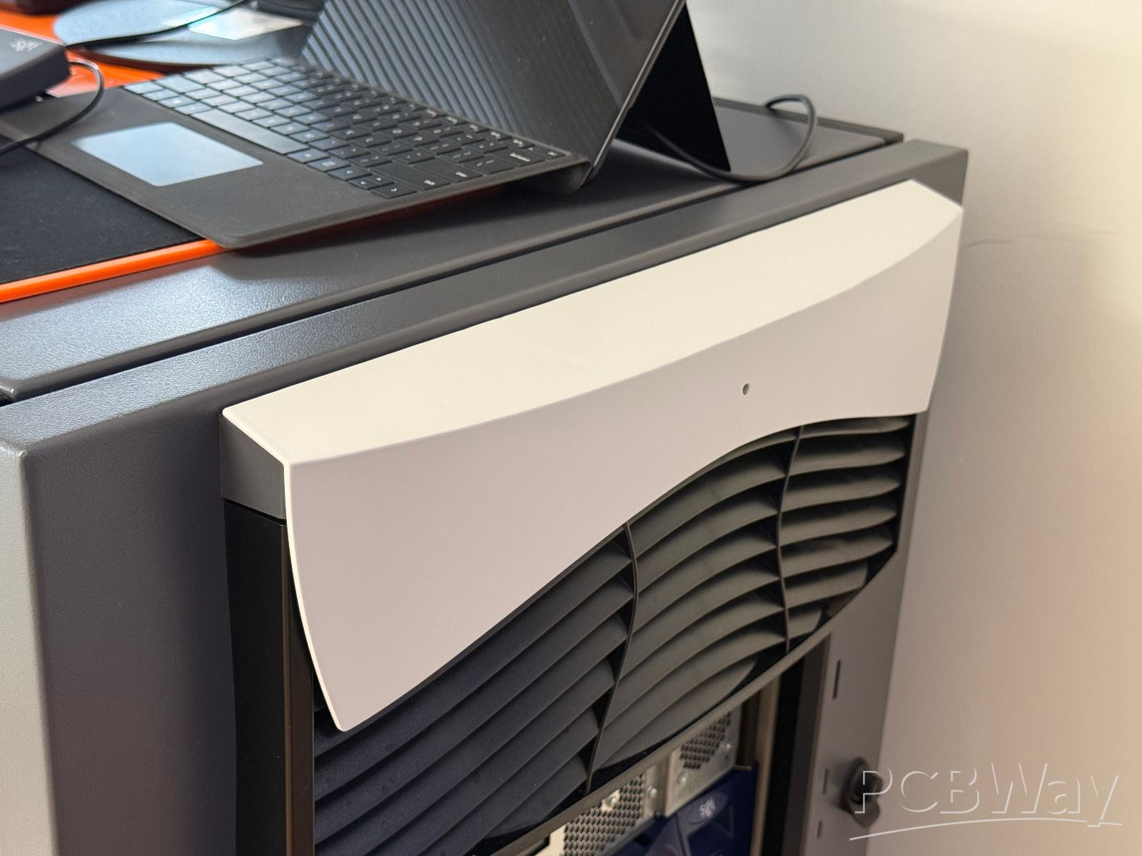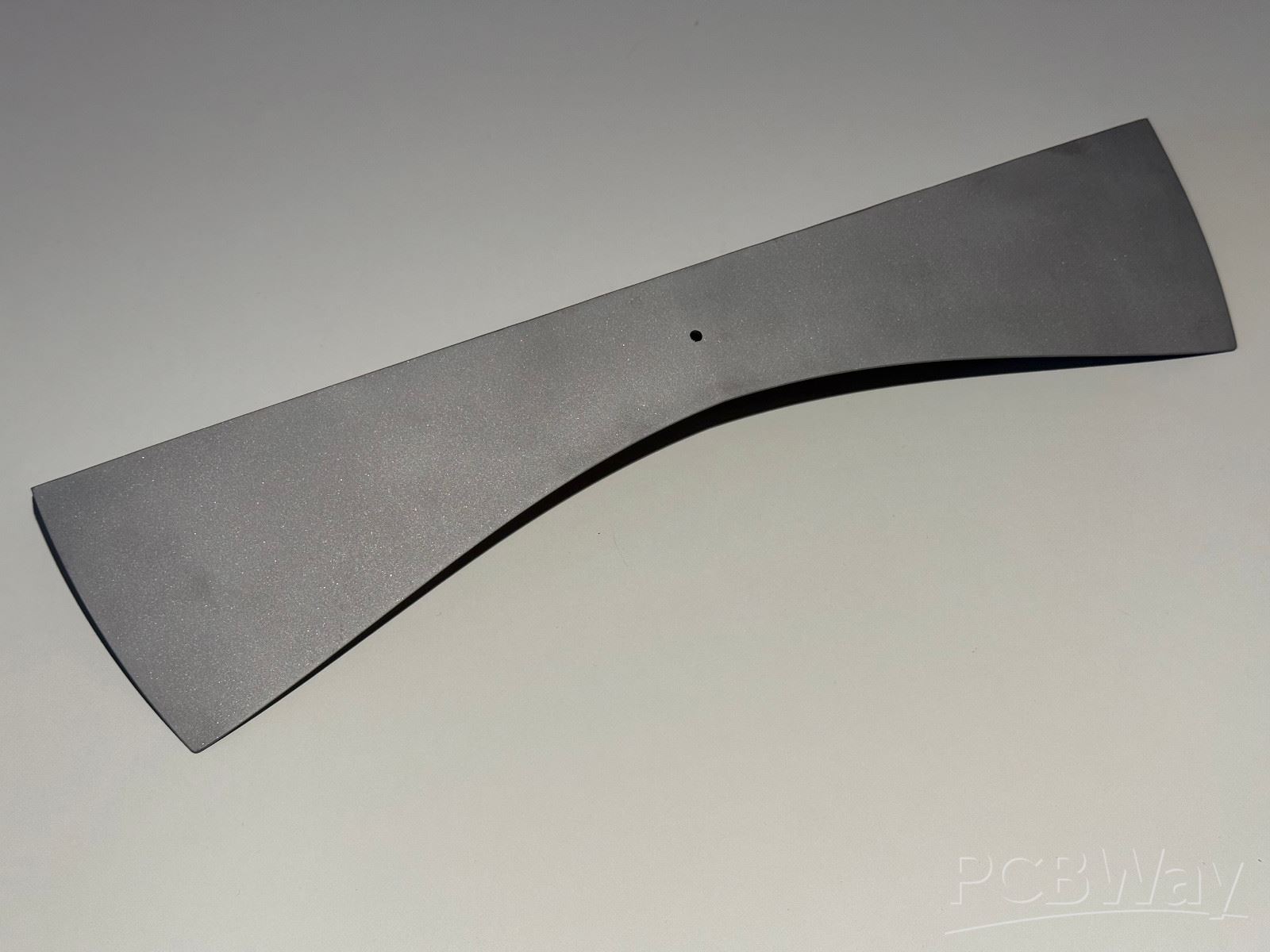 This is a replica nameplate for a vintage computer, recreated in SLM printed aluminium. It's a large part, complicated by its thinness and curves replicating the original. The resulting print is good but needed some hand finishing: some of the surfaces were rough, expected and due to the printing process; the print was approximately 5mm longer, also expected and still good for something nearly 50cm long; one of the screw threads broke off after a few uses. Overall I'm happy with the print, it was expensive but there were few options for this part (and no other companies could manage such a large print).