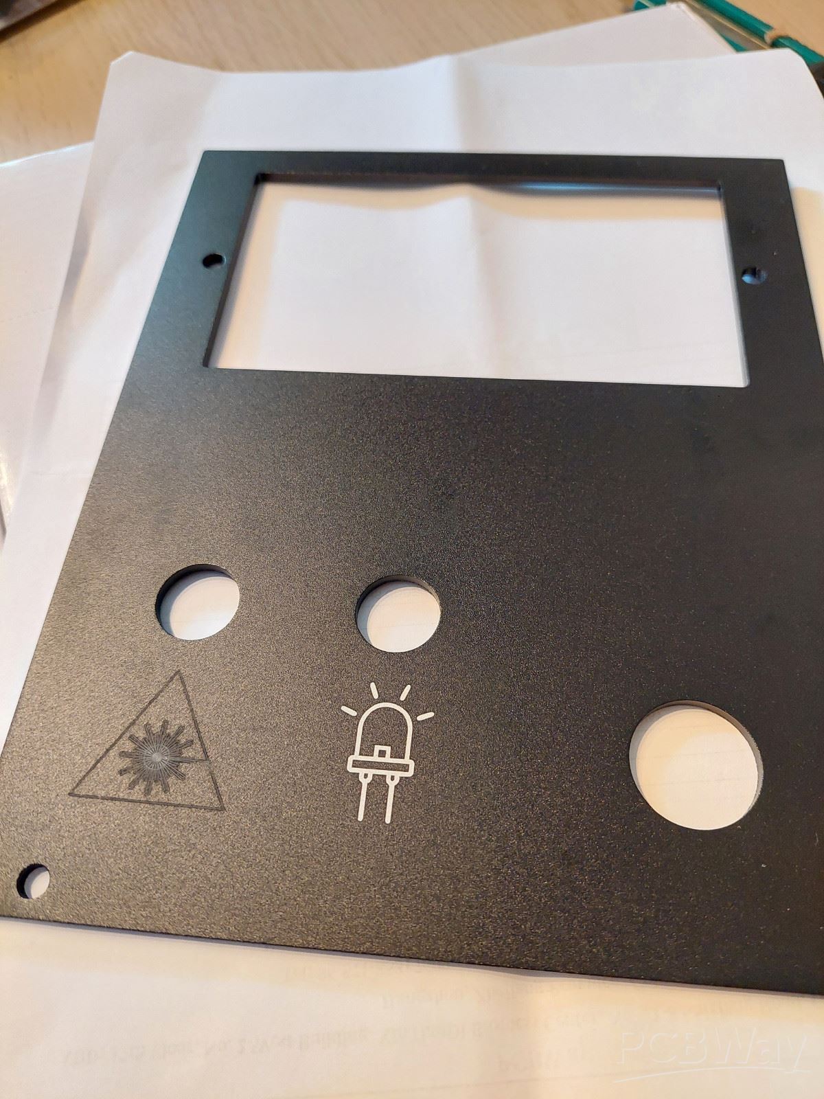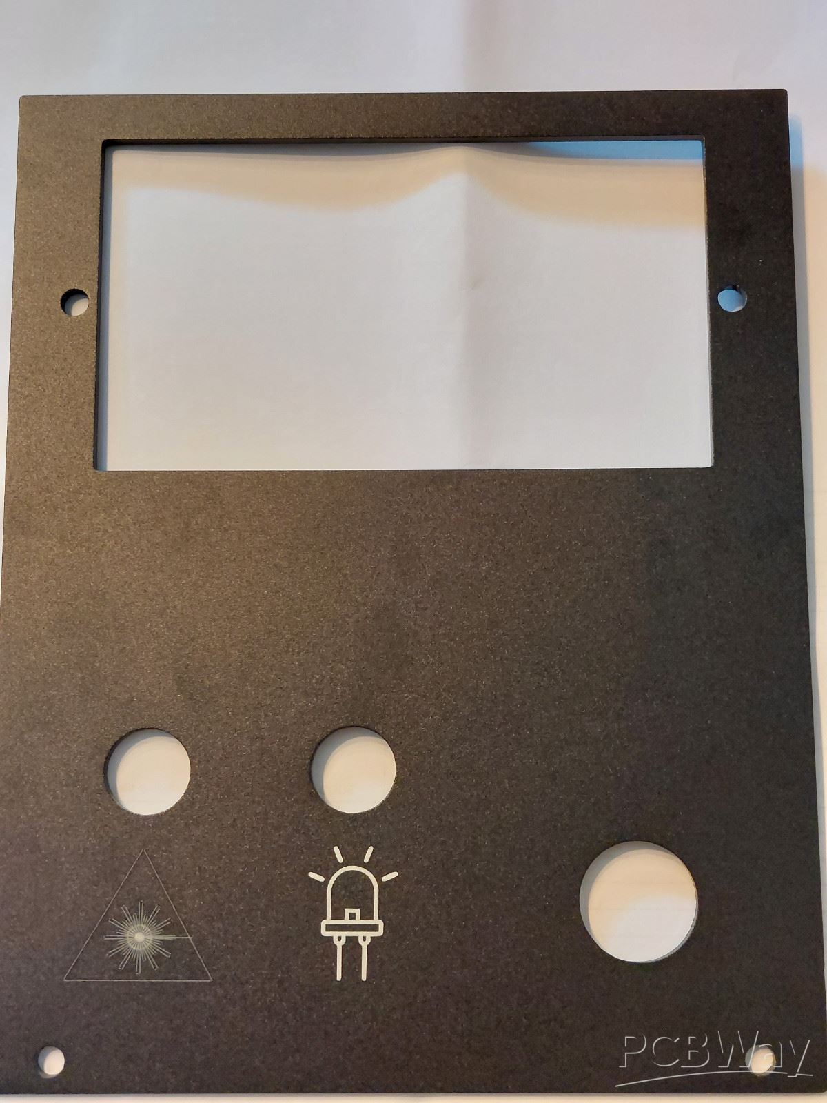 I was really surprised by the quick delivery time and good production quality of my order. The aluminium plate has a beautiful matte anodized finish and all the measurements on the drawing is perfectly cut to size on the part. The engraving on the part is really crisp and good, but I made an error in the dxf file for the symbol, so the triangle beam symbol is not as prominent as the bulb symbol, still great from PCBWay. All holes and positions are correct size, the large rectangle is perfect in size by 30 micron tolerance all over and the plate is not warped and fairly straight. Package arrived really quickly and well secured in foam wrapping. I give 5/5 stars for this order and would definitely recommend buying similar parts again from PCBWay :)