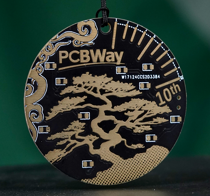 It is designed with a strong Chinese style. The tree on the front symbolizes PCBWay's growth and strength over the past 10 years. The 10 lines in the upper right corner resemble a clock, representing the decade of development. The clouds on the left side symbolize good luck. We hope PCBWay can bring good fortune and strong support in electronic manufacturing to every partner! The back of the badge lists PCBWay's main services, inviting everyone to explore them together.