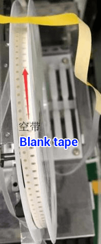 | 2. For each material that needs to be mounted, it is necessary to reserve a blank tape with a length greater than 50mm before it can be installed on the machine for production. Regardless of whether 1PCS or 1000PCS is produced, there will be 10-20PCS for each material to be removed to make enough space for the loading feeders,as shown in Figure 1. Figure 2 shows that the original factory has left enough blank length for the entire roll of packaging materials. (materials larger than 1206 size need to be manually patched after the materials are removed) | |||||||||||